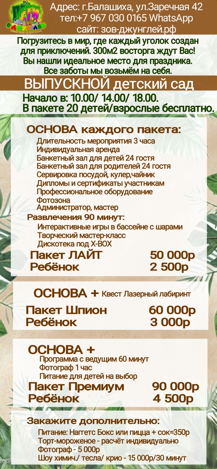 ПИТАНИЕ на выбор 350р./ребёнок (если не включено в тариф) |