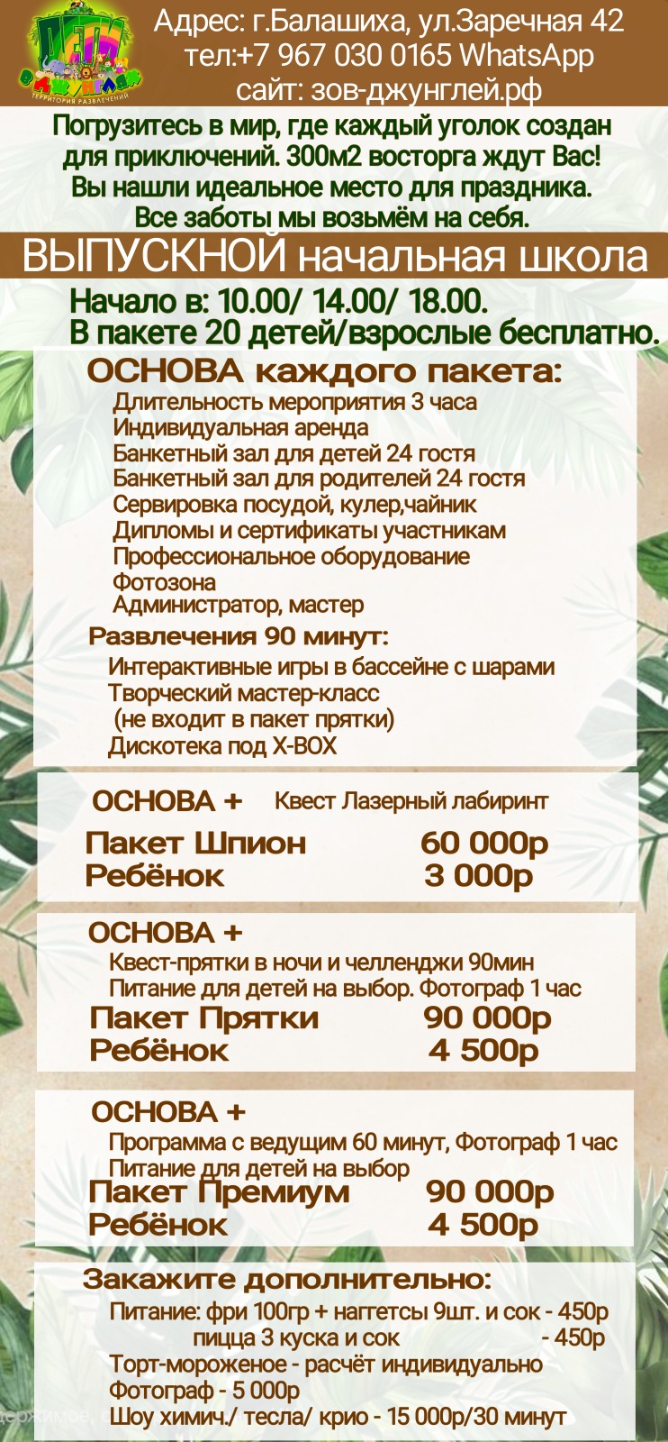 Расписание праздников: 10.00–13.00; 14.00–17.00; 18.00–21.00 УТРО БУДНИ СКИДКА 10% |
