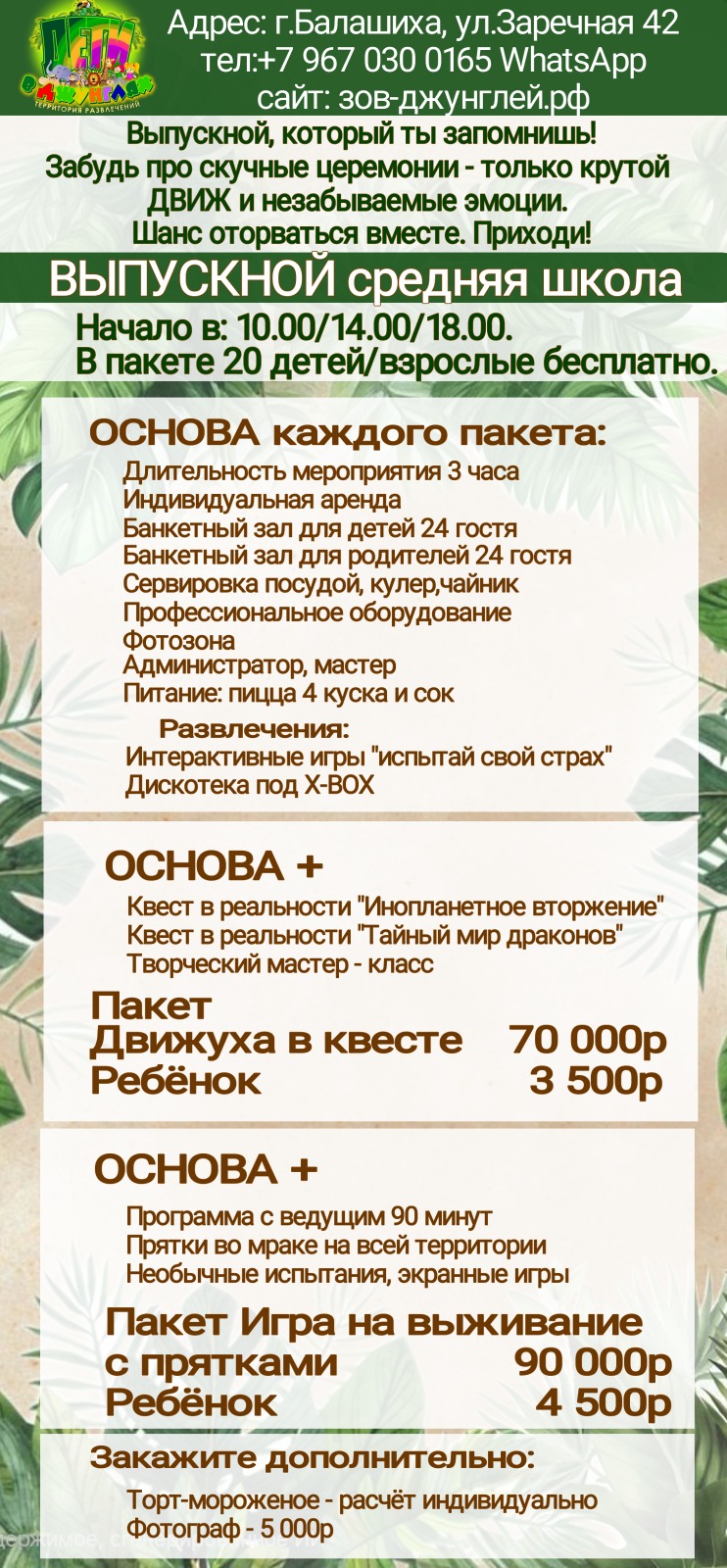 Расписание праздников: 10.0 – 13.00; 14.00–17.00; 18.00 – 21.00 УТРО БУДНИ СКИДКА 10% |